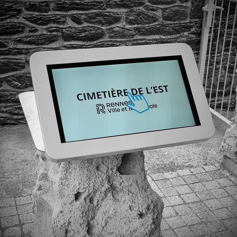 La instalación de un terminal interactivo permite mejorar los servicios ofrecidos a las familias e informar a los profesionales (marmolistas, pompas fúnebres) con rapidez. Permite visualizar el mapa del cementerio, buscar un difunto y su tumba concreta, visualizar los nombres de los difuntos cuyas cenizas se han dispersado y el reglamento del cementerio (por ejemplo).